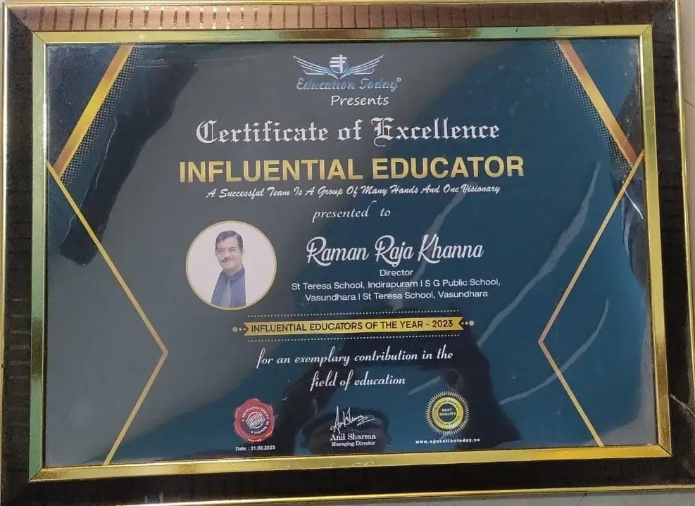 A visionary leader, a beacon of positivity, and a true enthusiast for progress, his unwavering dedication to the field of education is both admirable and inspiring. Under his guidance, St. Teresa School Indirapuram, Vaishali, Kaushambi, Vasundhara, & Sadopur, SG Public Sr Secondary School, St. Raman School, St. Florence School, Lav Kush Public School, Stesto Stepping Stones School, St. George School & College in Greater Noida and so many group of schools have flourished, embracing innovation and excellence at every turn. Sir's accolades speak volumes about his remarkable contributions to the society.